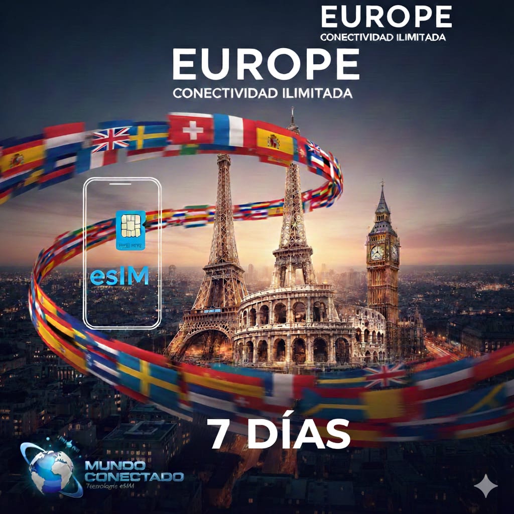 EUROPE 41 PAISES 20GB + ILIMITADO 128KBPS POR 7 DIAS