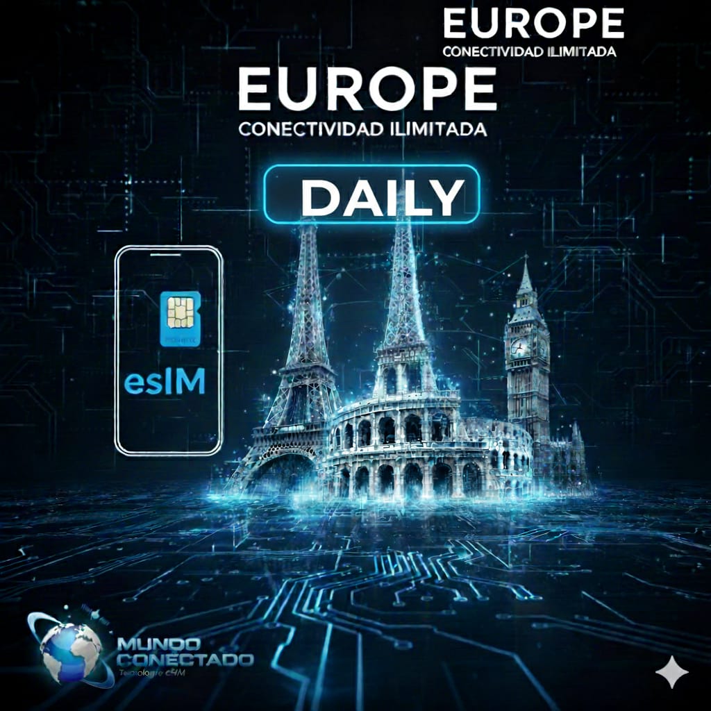 EUROPE 34 PAISES 1GB DIARIO + ILIMITADO 512KBPS POR 15 DIAS